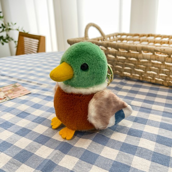 Adorable Plush Bird Keychain & Bag Charm | Vibrant Green Head, Yellow Beak & Gradient Wings with Metal Ring | Cheerful Backpack Purse Accessory for Nature Lovers | Realistic Birdie Decoration Gift (Single Piece)