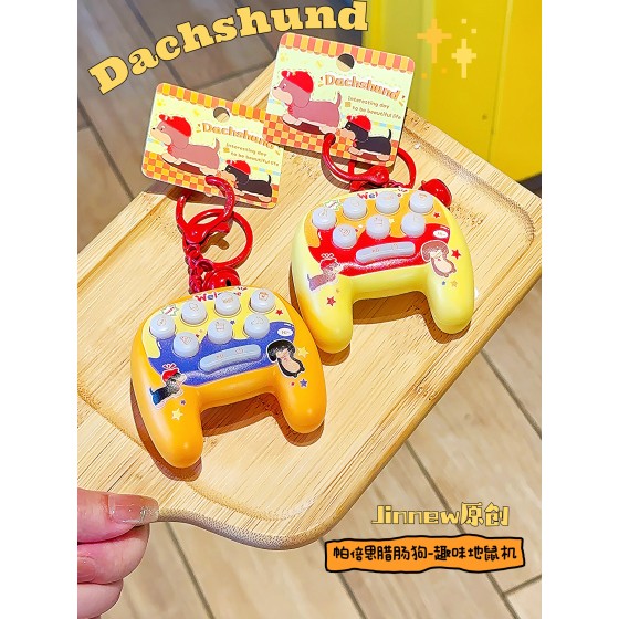 Dachshund Whack-A-Mole Keychain (Orange/Yellow) - 4" PVC Arcade w/ Red Chain | Retro Desk Toy for Key Organizing & Stress Relief