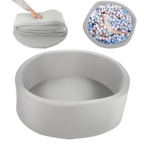 Kids Ball Pit with Memory Foam, Gray Baby Play Mat Indoor/Outdoor, Washable Ball Pool with Non-Slip Bottom, Soft Playpen for Children 12+ Months, Holds 800+ Balls