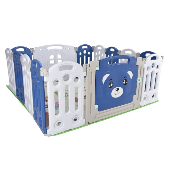 Baby Playpen with Mat, Foldable Safety Gate Play Yard, Non-Toxic PE Material, Pink/Blue, for Children 0-6 Years, Indoor Outdoor Play Area with Anti-Slip Base