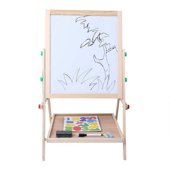 Breathable Kids Art Easel, Adjustable Height Double-Sided Wooden Standing Chalkboard & Whiteboard, Stable Drying Painting Board with Storage Shelf, Natural Pine Wood for Children 3+ Years Old