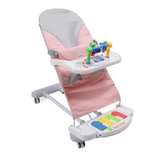 Baby Rocker Pink with Music Toy Bar, Automatic Bouncing Chair Battery-Free Rocking, Foldable Portable with Wheels, 3-Position Recline, H-Shaped Steel Frame, For Infants 9 Months-2 Years