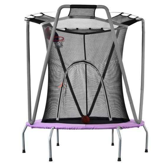 Kids Trampoline with Safety Enclosure Net, 157cm Round Indoor Outdoor Trampoline with Basketball Hoop, 50kg Weight Capacity, U-Shaped Zippered Door for Children Ages 3 and Up
