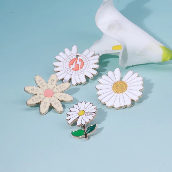 Daisy Metal Pin Badge Set (4 Designs) – Leaf Stems with *88.08.18* Date + Lightning Flower + YES/NO Interactive Petals + Classic Bloom | Botanical Accessory for Denim Jackets, Tote Bags