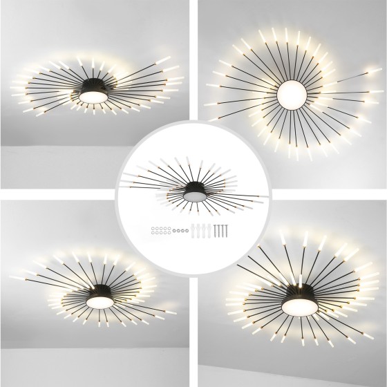 CE Certified Modern LED Ceiling Light - 42 LEDs Sparkle Flush Mount - Elegant Acrylic Diffuser - Flush Mount Fixture for Living Room & Bedroom - Warm White (3000K) - 110-240V
