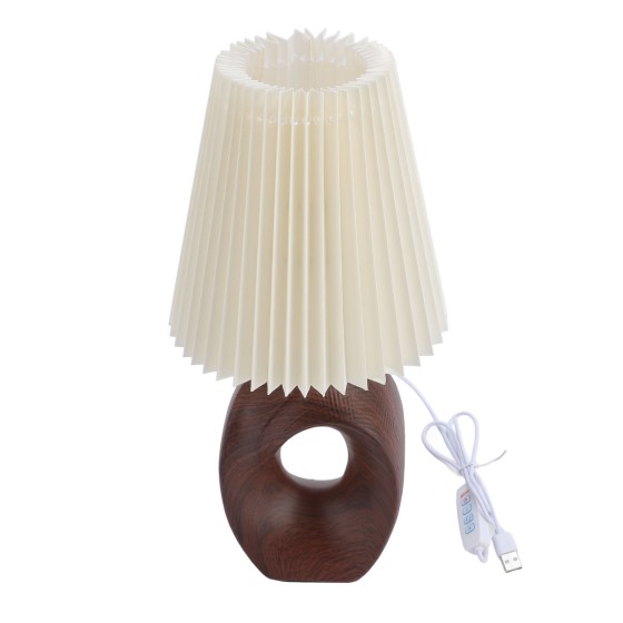 Walnut Wood Table Lamp with Linen Pleated Shade, 3 Color Temperature Dimmable Reading Lamp for Bedroom, Nightstand Wedding Decor Night Light Gift