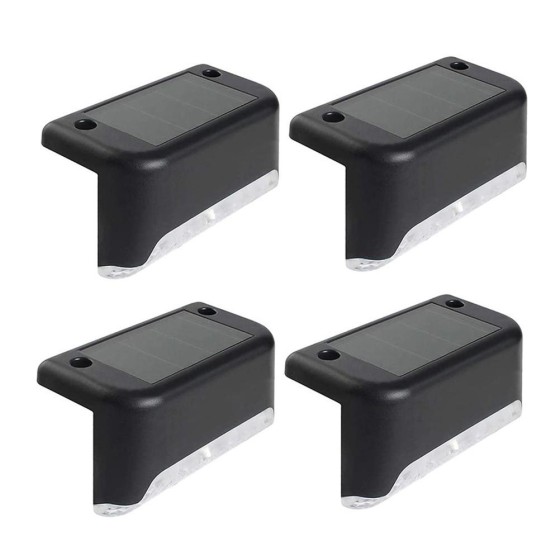 4-Pack Solar Step Lights Outdoor, IP65 Waterproof LED Stair Lights | Auto On/Off, 10H Runtime | White Light | Easy Screw Fix Installation for Deck, Patio, Garden, Pathway (Black)