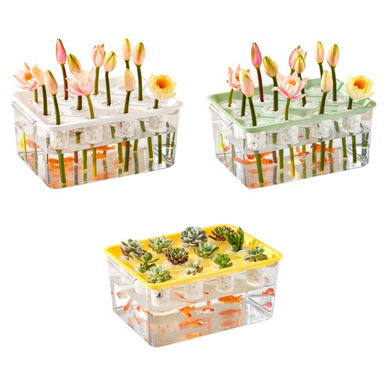 Aquaponics System, Clear Plastic Fish Tank with Hydroponic Planter Box Lid, 12 Nursery Pots for Indoor Herb Garden, Self-Cleaning Aquarium for Small Fish, Water Growing Kit for Balcony Decor