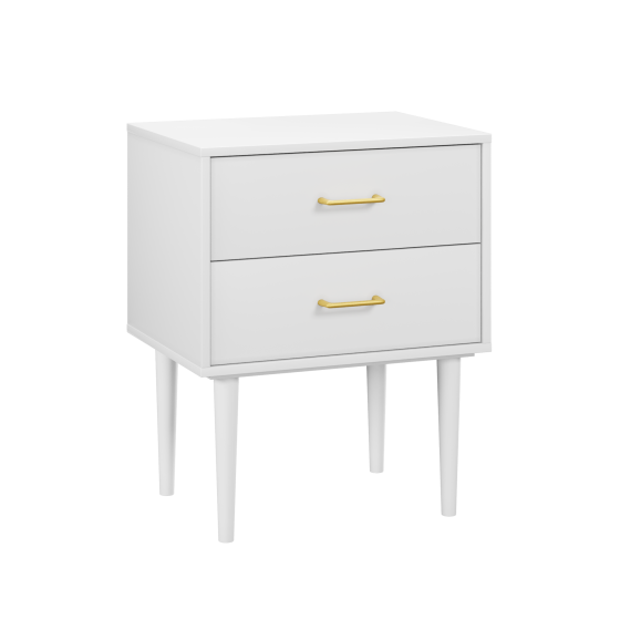 Night Stand with 2 Drawers, White Modern Bedside Table with Solid Wood Legs, Small Bedroom Storage Cabinet, Compact End Table for Bedroom