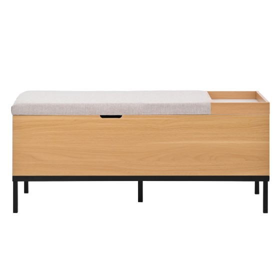 Foldable Storage Ottoman Bench, 115cm Multifunctional Shoe Storage Cabinet with Seat, Collapsible Footrest Stool for Entryway, Natural Wood