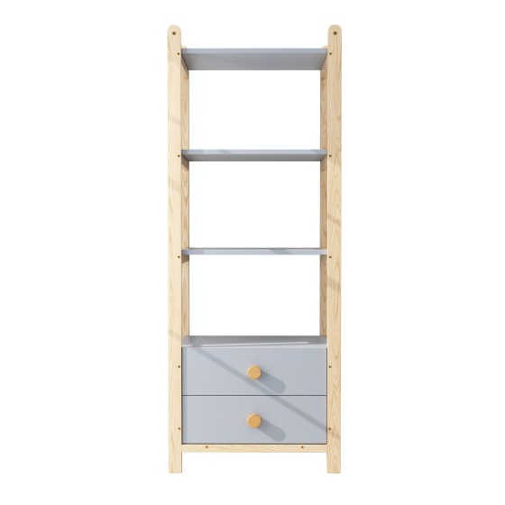 Kids Bookcase with 4 Shelves & 2 Drawers, 70x44x180cm Blue Pine Wood Storage Shelf for Children's Room, Freestanding Bookcase Organizer with Display Space, Blue and Natural Color