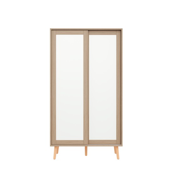 2-Door Sliding Wardrobe Closet for Kids, White & Wood Finish, 80x46x141cm, with Clothing Rail & Shelves, Space Saving Storage Cabinet for Bedroom