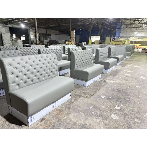 轻奢灰色皮质卡座 餐厅咖啡厅卡座沙发 菱形绗缝软包 多尺寸多款式可选(U形/直排/双排/圆形) 现代商用长沙发 火锅店西餐厅家具