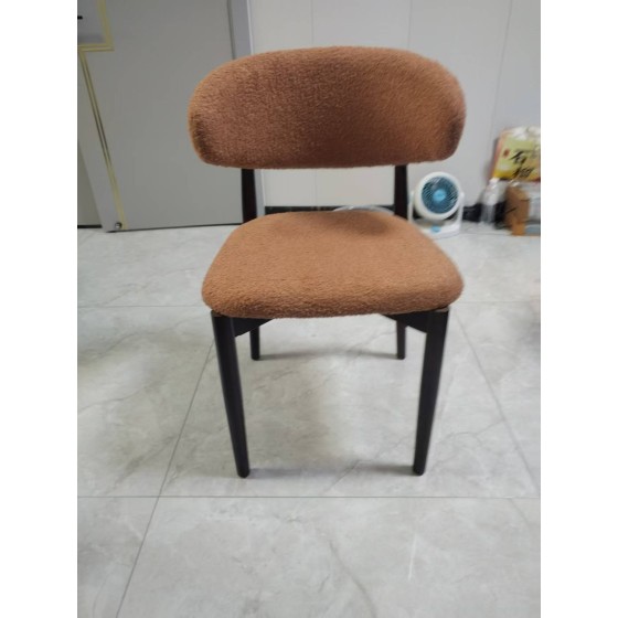 现代简约泰迪绒餐椅 棕色软包书房卧室扶手椅 北欧风创意休闲单人椅 咖啡厅网红椅 深胡桃色椅腿
