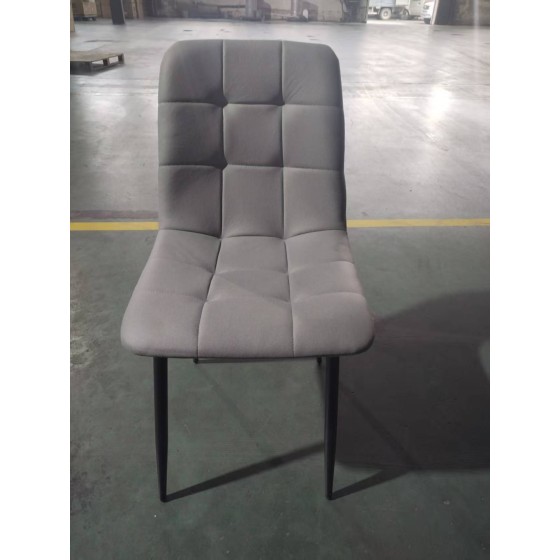 现代简约方格绗缝餐椅 浅灰色绒布高背书房椅 黑色金属细腿休闲单椅 适用餐厅书房客厅办公室咖啡厅 一把装