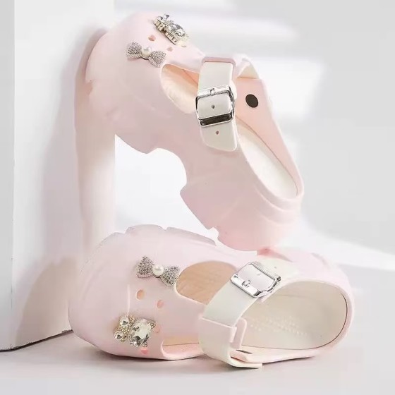 厚底洞洞鞋拖鞋一双装10色选 - 38-41码(淡粉/白/黑/撞色款) 老爹鞋风厚底EVA材质 DIY装饰随机 居家轻户外透气凉鞋 舒适潮流沙滩鞋 yangguanglu