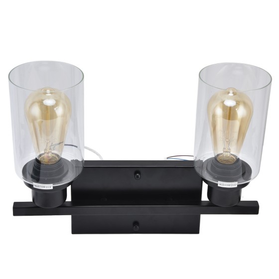 CE认证 双头铁艺玻璃壁灯 工业风 - 宽电压85-250V 镜前/床头/走廊适用 黑色 (不含光源) YM3119210279411