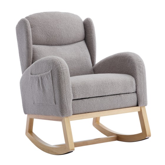 摇椅哺乳椅一体带脚踏凳 | 免安装泰迪绒可躺休闲懒人椅子 | 卧室客厅阳台单人沙发躺椅 带储物袋 | 灰色