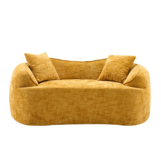 弧形双人小沙发奶油黄 | 免安装可压缩包裹整装入户 | 高回弹海绵弹簧底座客厅卧室两用懒人沙发 | 奶油黄色