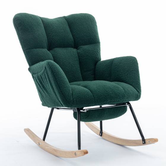 网红摇椅懒人沙发可伸缩脚踏 | 泰迪绒软包阳台休闲躺椅 免安装 | 静音摇动客厅卧室单人沙发 承重300斤 | 绿色