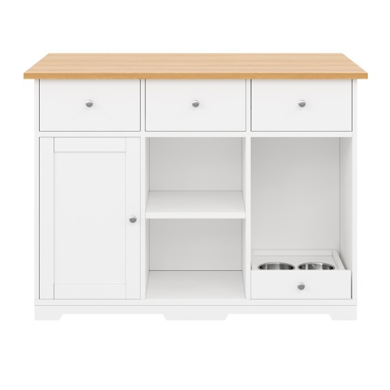 厨房岛台带宠物窝食盆区 | 多功能储物餐边柜3抽屉调料架可调节层板 | 白色120*60*90cm | 适用于厨房餐厅 狗狗休息角 猫咪屋 收纳整理