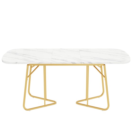 白色岩板可伸缩餐桌 轻奢大理石纹镀金桌脚 | 可变长140/180*80cm | 适用于4-6人 现代简约餐厅家具