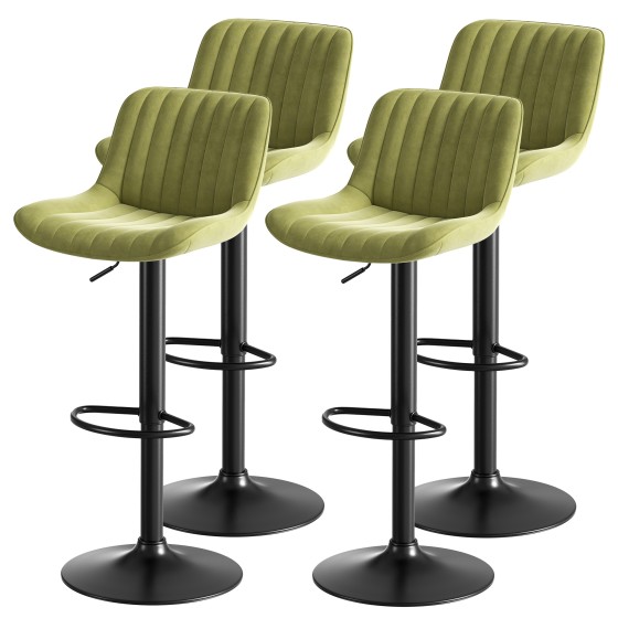 轻奢天鹅绒吧椅四把套装 可升降旋转吧凳 棕/绿/黑三色 87-109cm可调 梯形靠背 商用家用首选