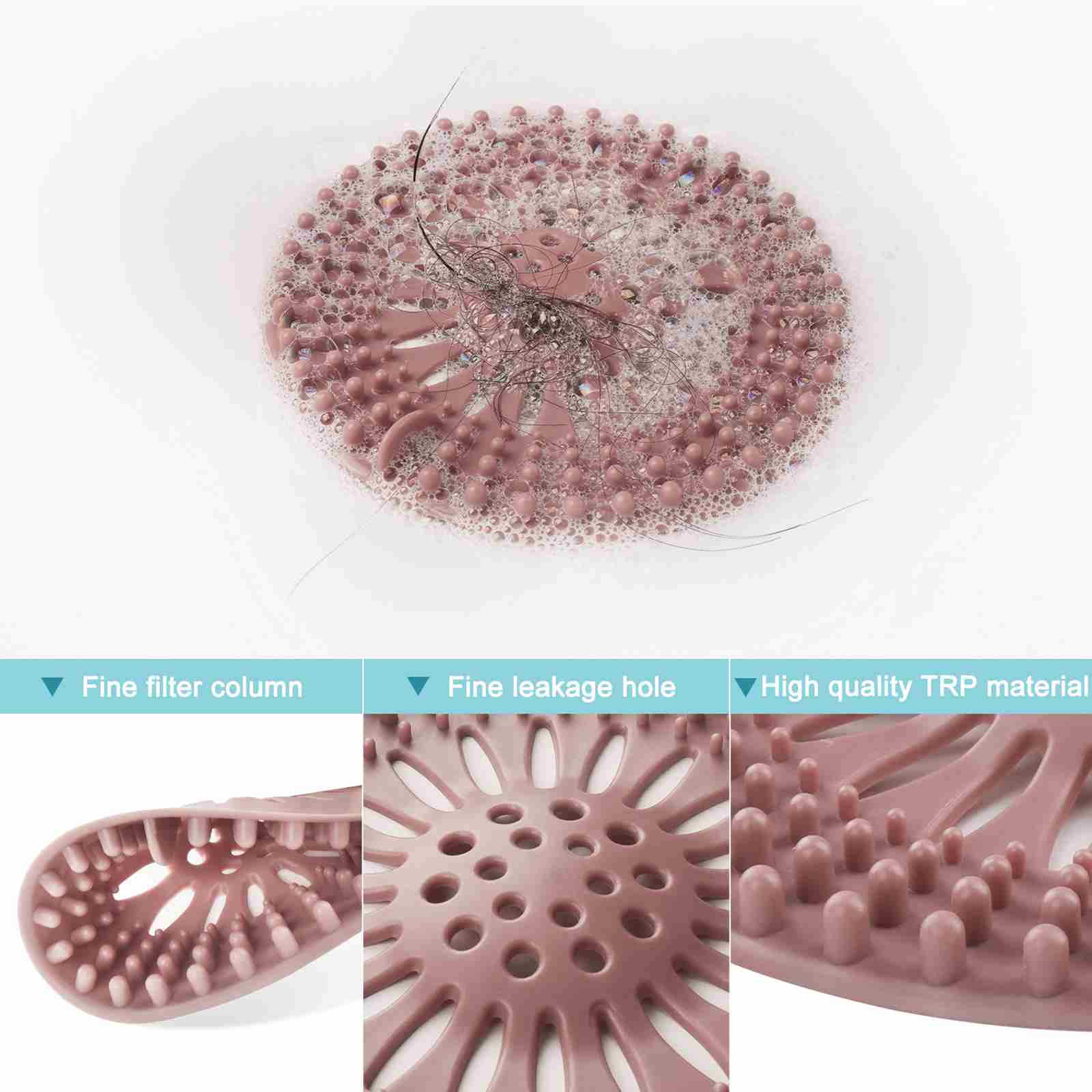 高效排水防堵塞地漏盖五件套 彩色TPE橡胶浴室厨房通用滤发器 - 快速排水设计有效拦截毛发杂物,易清洁安装,适用于浴缸洗手槽等多场景